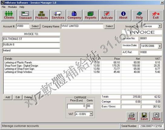 • Hillstone Invoice Manager v2.1.07 英文正式版(發票、賬單、賬戶管理軟體)