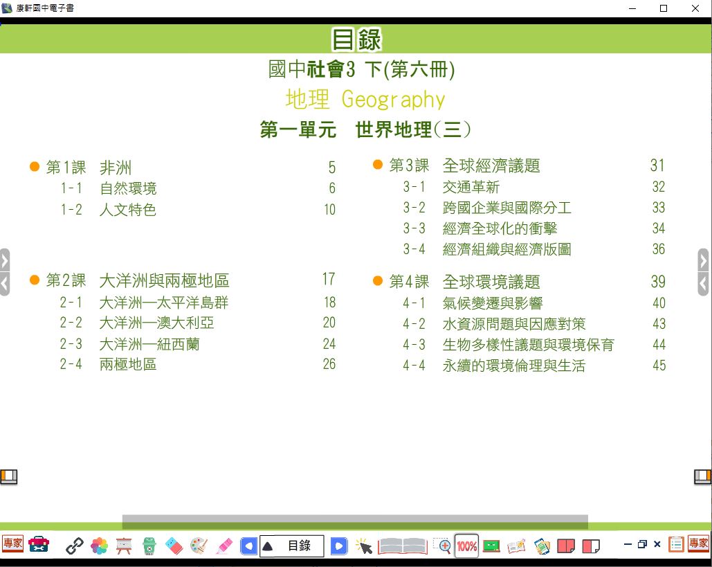 108學年下學期 國中 康軒版 地理電子書 3年級(含課本、習作含解答)教學光碟DVD版