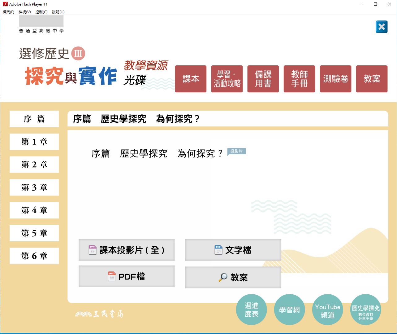 111學年下學期 高中 三民版 選修歷史(III)探究與實作 教學光碟