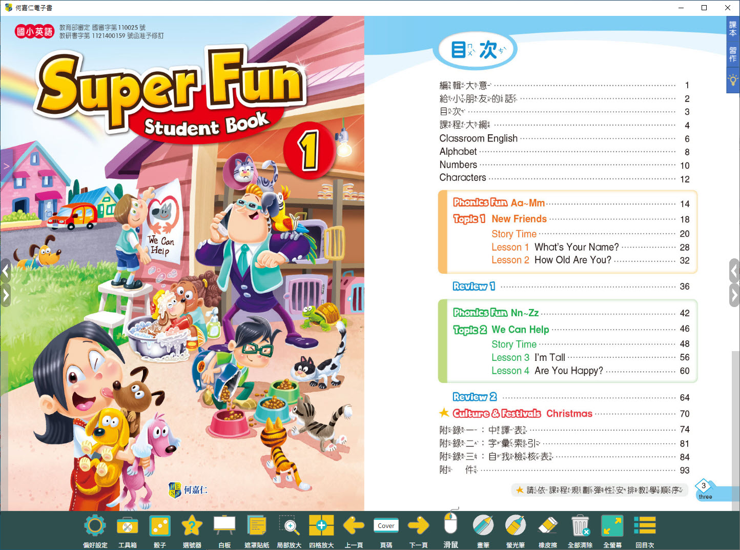 112學年上學期 國小 何嘉仁 英語電子書 Super Fun 第1冊(含課本、習作含解答)教學光碟