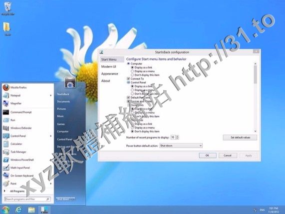 • StartIsBack v2.1.2 英文正式版(Windows 8 開始菜單輔助軟體)