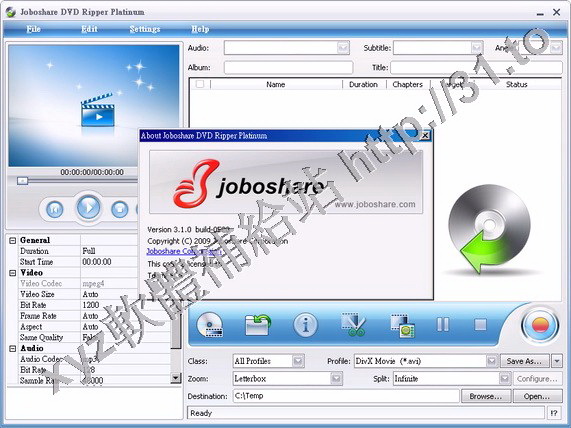• Joboshare DVD Ripper Platinum v3.1.8.0920 英文正式版(音視頻轉換軟體)